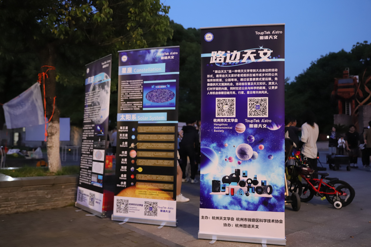 恰逢第八个全国科技工作者日,杭州市天文学会与杭州市钱塘区科学技术协会在下沙高教区的消防主题公园,开展了一场“路边天文”观测活动。本次活动还有来自杭州各大高校的天文社同学与周边的天文同好们,他们自带设备,共同参与科普、分享观测的乐趣。
