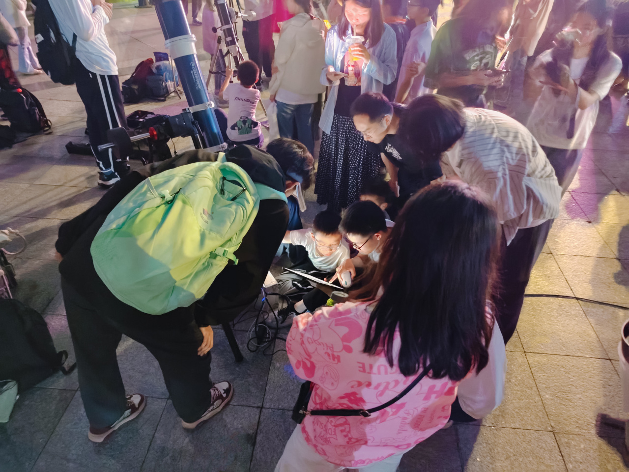 “路边天文”观测让天文科普以更轻松的姿态走进日常生活,通过望远镜,拉近了我们与星空的距离。借助相机,记录下此刻的月亮动态与相视瞬间。