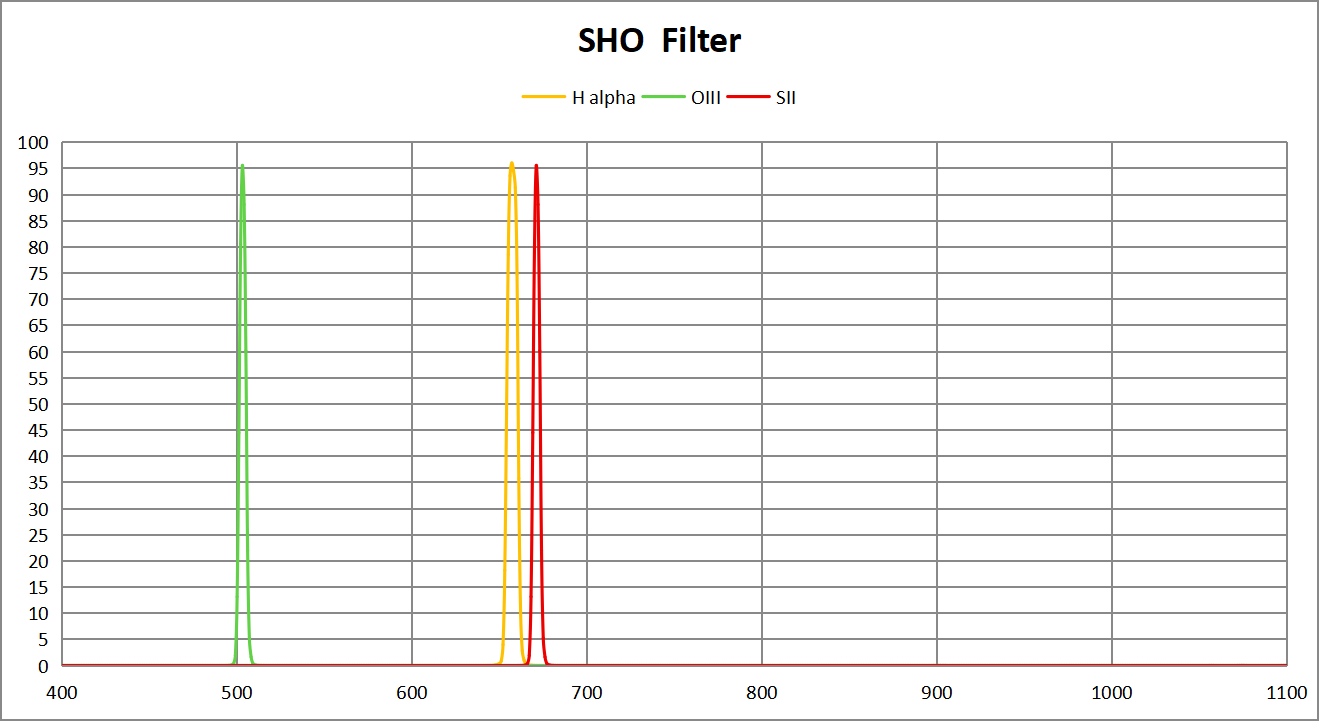 HSO滤镜包括以656.3nm波长为中心,带宽为3.5nm的Hα滤镜,以及带宽为4nm的[SII]滤镜和[OIII]滤镜,中心波长分别为671.6nm、500.7nm。