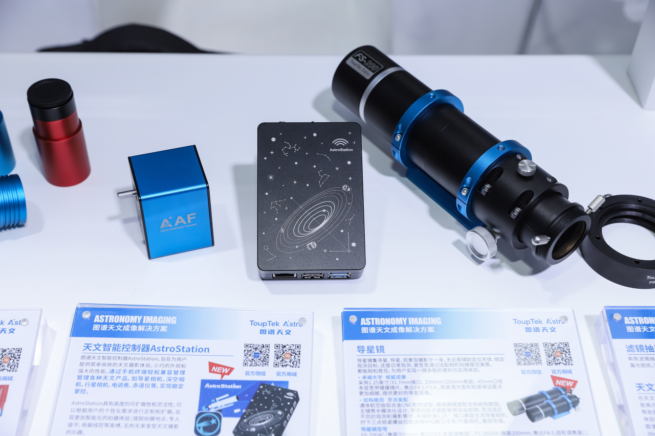 本届展会,图谱天文首次亮相3号展馆(精密光学&摄像头技术及应用展),在毗邻“望远镜及天文器材专区”的NO.3D53展位上,带来多款核心系列产品,包括SkyEye深空旗舰系列、ATR深空高端系列、G3M系列行星/导星相机、GPM系列导星相机等成像设备,以及偏轴导星器OAG、电动滤镜轮AFW、滤镜抽屉和滤镜等专业配件。