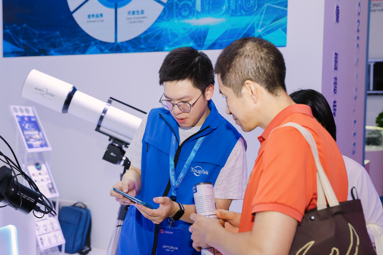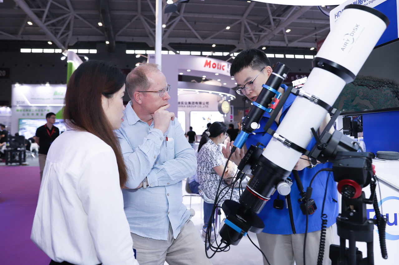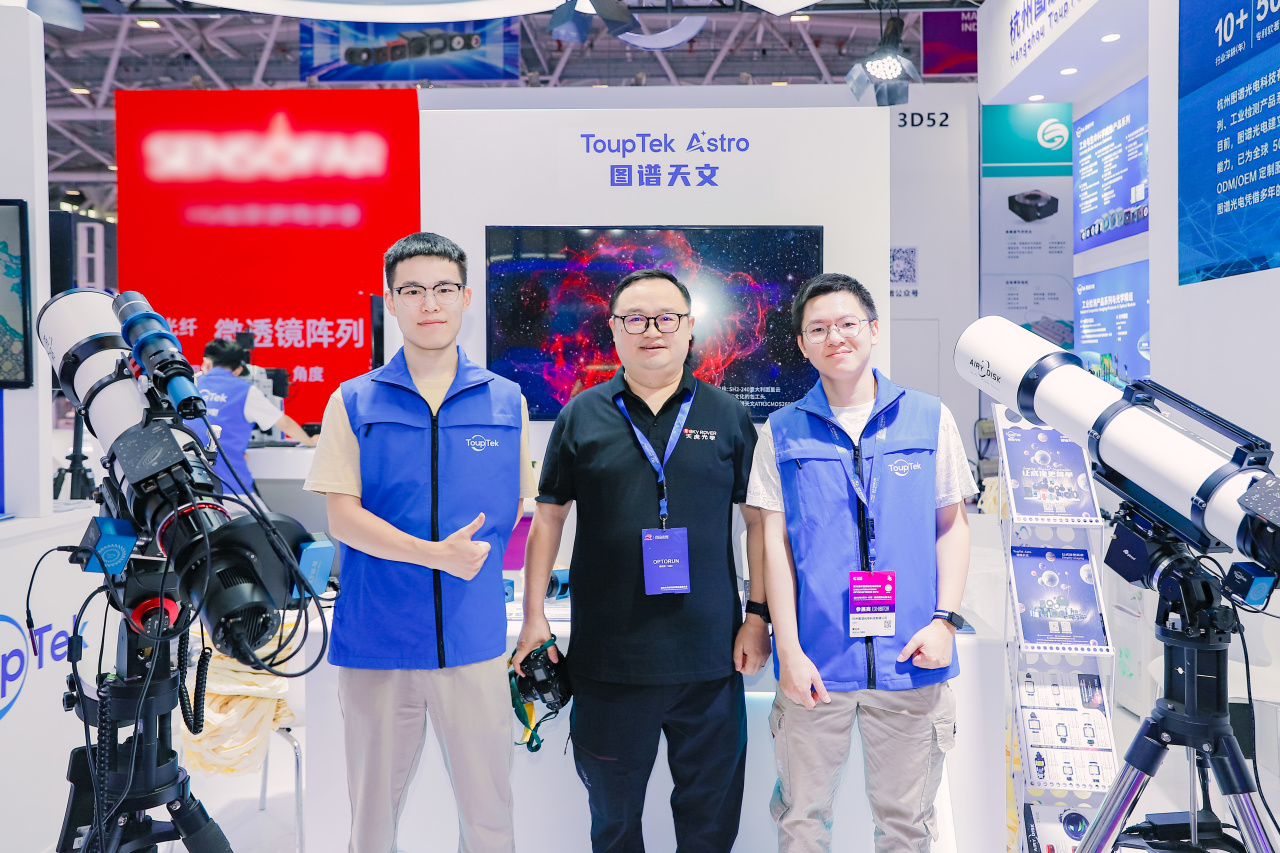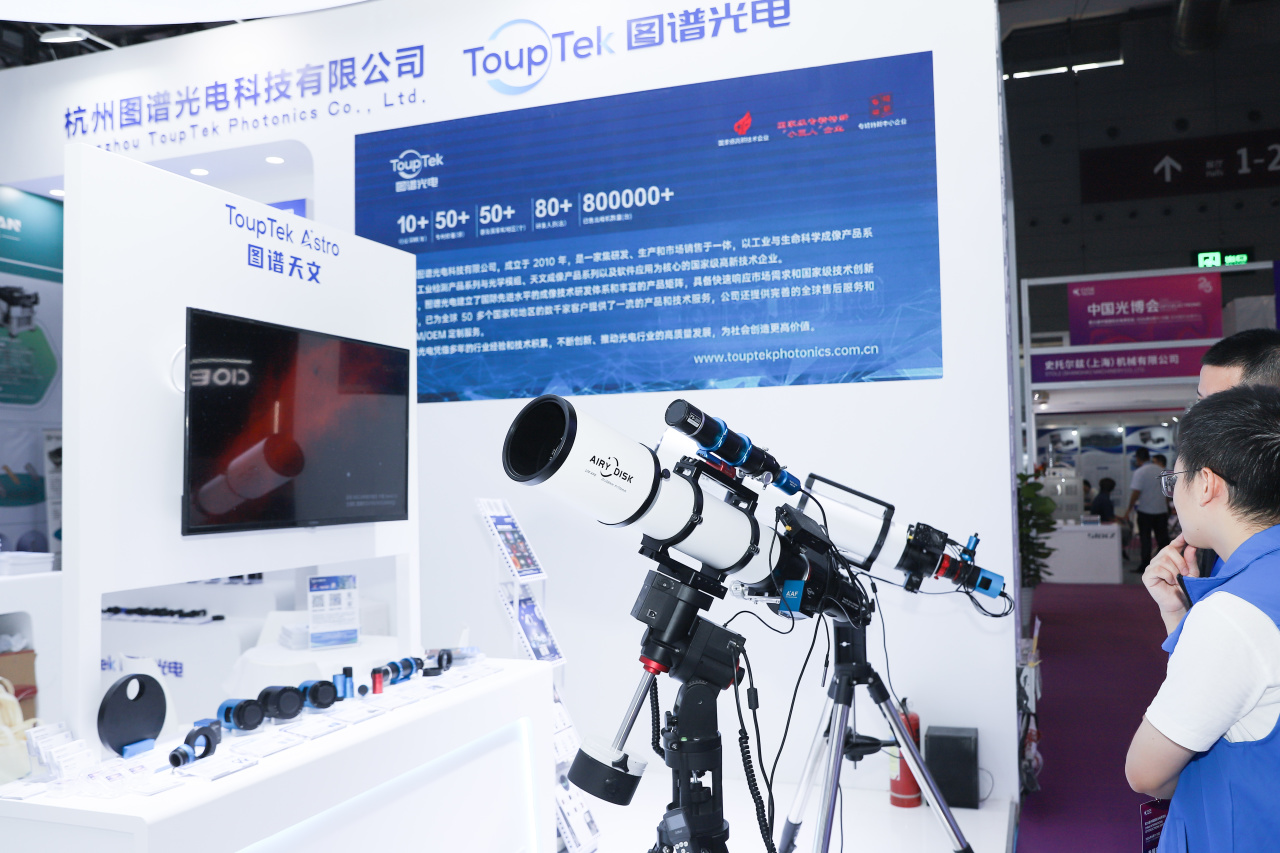 在展会的望远镜及天文器材展区,图谱天文与天虎SkyRover、星达Sky-Watcher、博冠BOSMA、星特朗Celestron等知名的光学领域厂商展开积极交流,相关负责人也先后莅临图谱天文展台交流指导。公司的SkyEye深空旗舰系列相机、ATR深空高端系列相机、G3M系列行星/导星相机更是在多家友商展位上露面展示,大家一起在CIOE中国光博会共同唱响天文界的好声音。