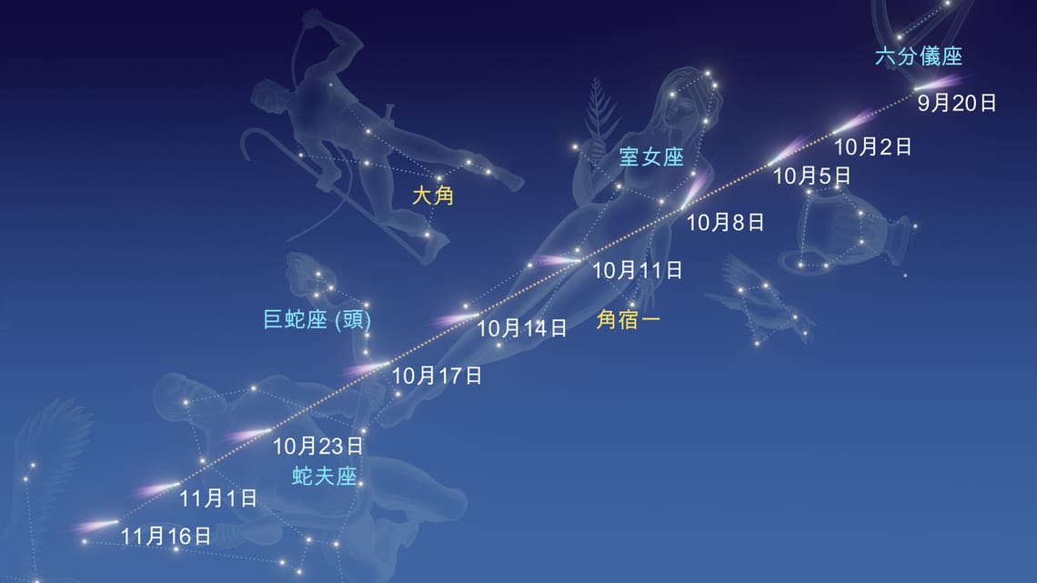 9月底至11月,C/2023 A3彗星轨道运行天区