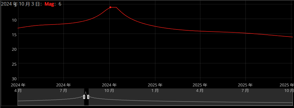 C 2023 A3彗星的星等随时间变化图表·来源theskylive