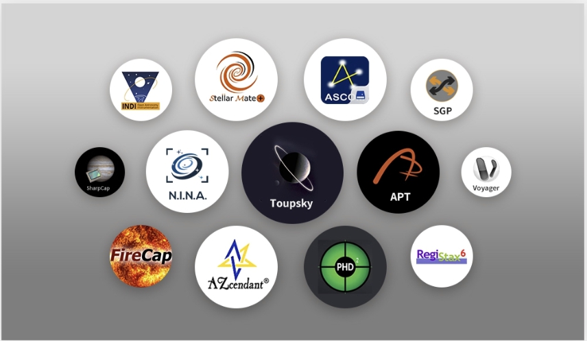 为了广大天文爱好者提供灵活、易用的天文成像设备,图谱天文针对天文拍摄使用的主流软件或平台进行了多方面的适配,助力各位玩家轻松调控产品,开启广阔的星空探索。