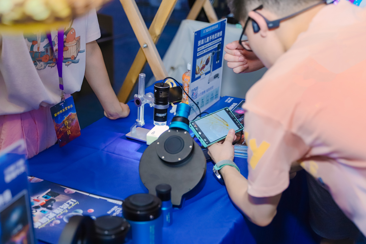 除了天文产品,图谱天文团队还特别展示了一款适用于显微观测的手持桌面显微镜PUM08300PKA。这款显微镜让现场的观众们得以近距离观察细胞切片的微观世界,领略生命的奥秘,让微观世界不再遥远。
